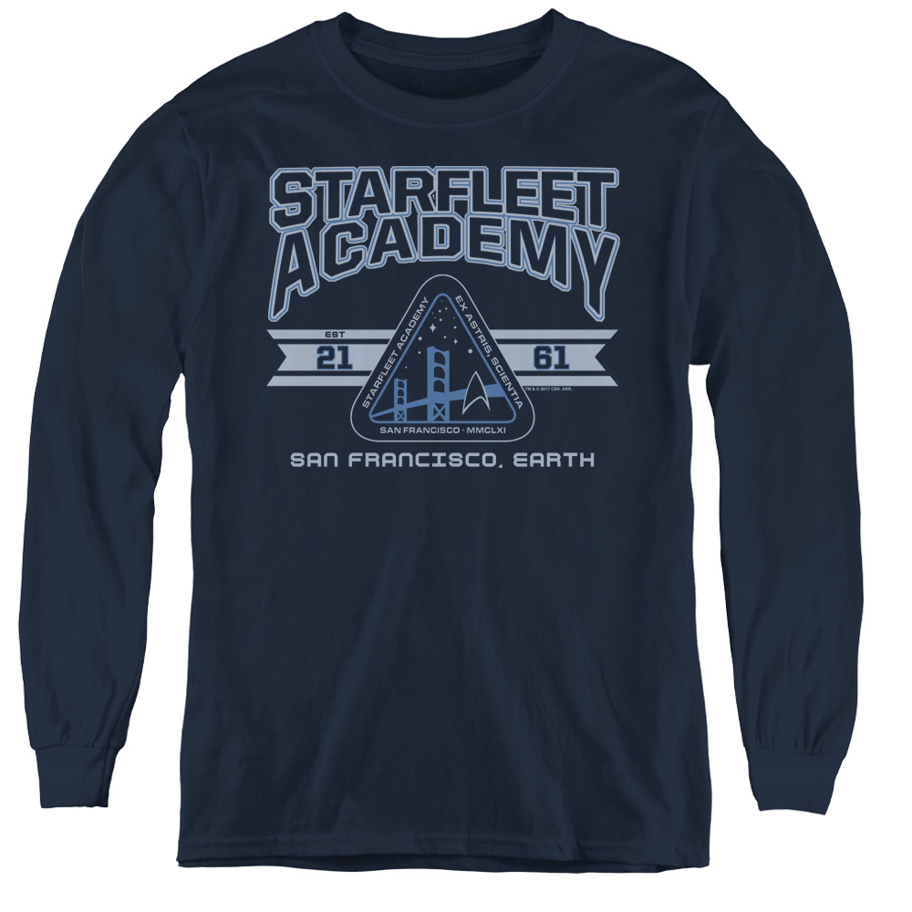 Trevco CBS863-YL-1 Star Trek & Starfleet Academy Earth - Youth Long Sleeve Tee, Navy - Small