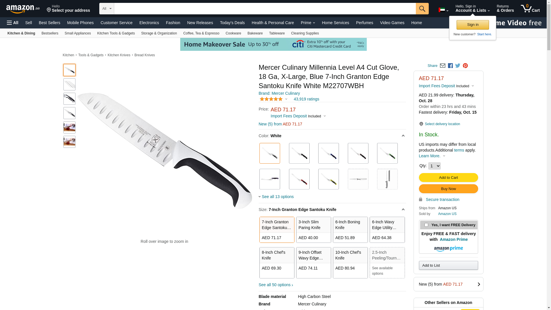 Mercer Culinary M22707WBH Millennia® 7" Granton Edge Santoku with White Handle