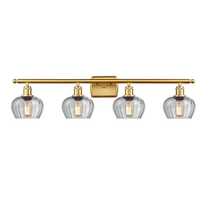 INNOVATIONS LIGHTING 516-4W-SG-G92-LED BALLSTON FENTON 36 INCH FOUR LIGHT WALL MOUNT CLEAR GLASS VANITY LIGHT, SATIN...