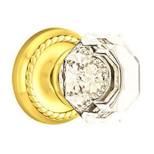 Crystal Door Hardware Collection - Old Town Privacy Door Knob with Rope Rose in Unlacquered Brass by Emtek Hardware - 8201OTUS3NL238 | MyKnobs