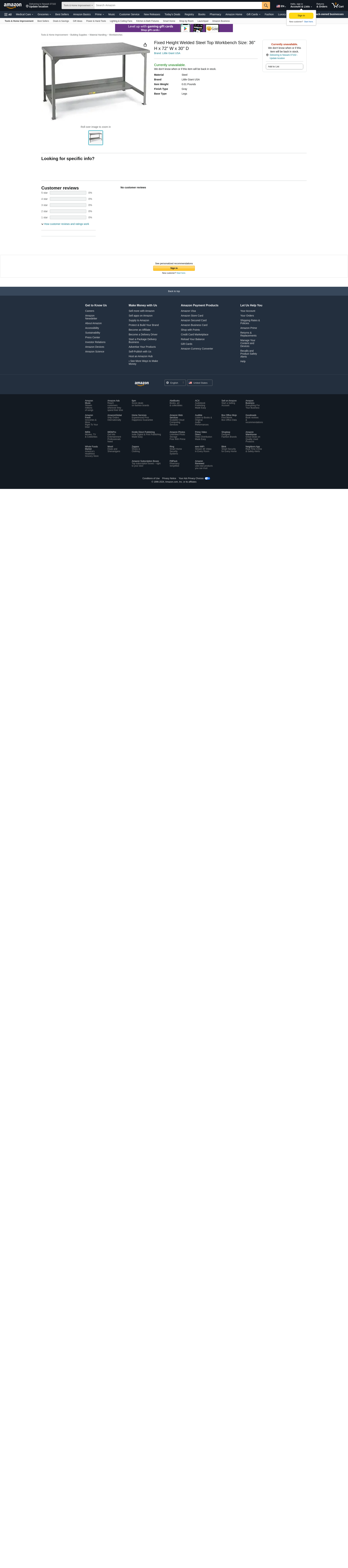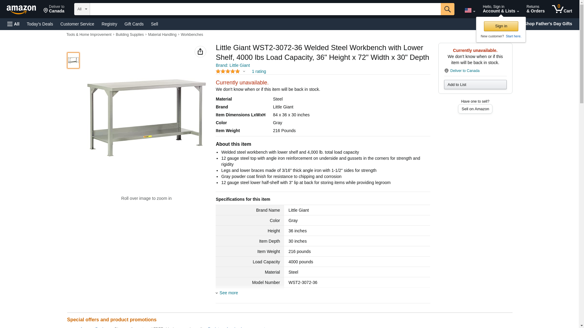 WST2-3072-36 Size: 36" H x 72" W x 30" D Features: -Heavy-duty all-welded construction. -Half-depth lower shelf. -Weight capacity: 3000 lbs. - 5000 lbs. -Made in the USA. Finish: -Gray. Weight Capacity: -5000 Pounds. Shelves Included: -Yes. Top Material: -Metal. Frame Material: -Metal. Country of Manufacture: -United States. Dimensions: Size 36" H x 48" W x 24" D - Overall Width - Side to Side: -48". Size 36" H x 48" W x 24" D - Overall Depth - Front to Back: -24". Size 36" H x 48" W x 24" D - Overall Product Weight: -109 lbs. Size 36" H x 48" W x 30" D - Overall Width - Side to Side: -48". Size 36" H x 48" W x 30" D - Overall Depth - Front to Back: -30". Size 36" H x 48" W x 30" D - Overall Product Weight: -124 lbs. Size 36" H x 60" W x 30" D - Overall Width - Side to Side: -60". Size 36" H x 60" W x 30" D - Overall Depth - Front to Back: -30". Size 36" H x 60" W x 30" D - Overall Product Weight: -153 lbs. Size 36" H x 72" W x 30" D - Overall Width - Side to Side: -72". Size 36" H x 72" W x 30" D - Overall Depth - Front to Back: -30". Size 36" H x 72" W x 30" D - Overall Product Weight: -186 lbs. Size 36" H x 72" W x 36" D - Overall Height - Top to Bottom: -36".