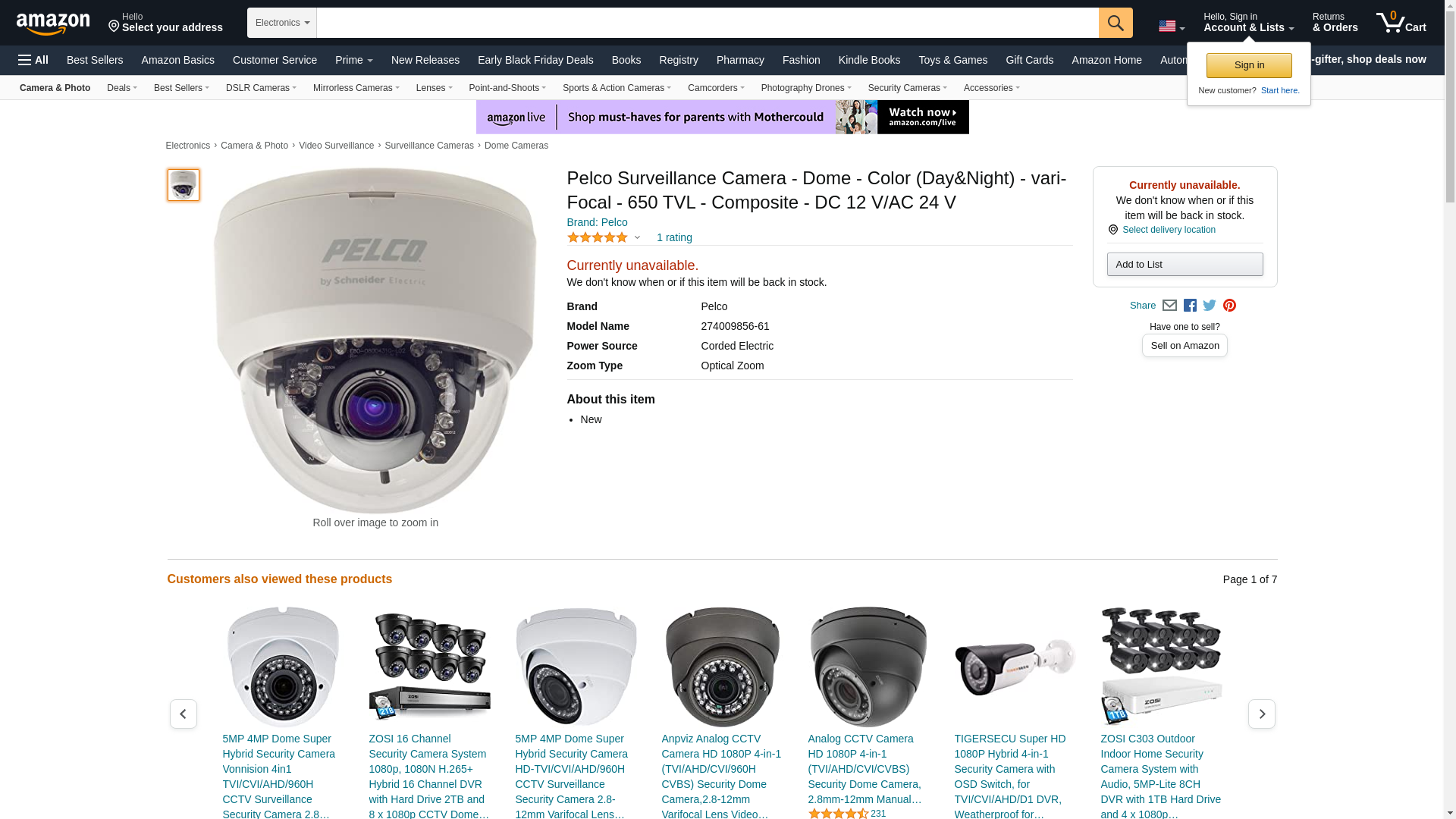 Pelco Surveillance Camera - Dome - Color (Day&Night) - vari-Focal - 650 TVL - Composite - DC 12 V/AC 24 V
