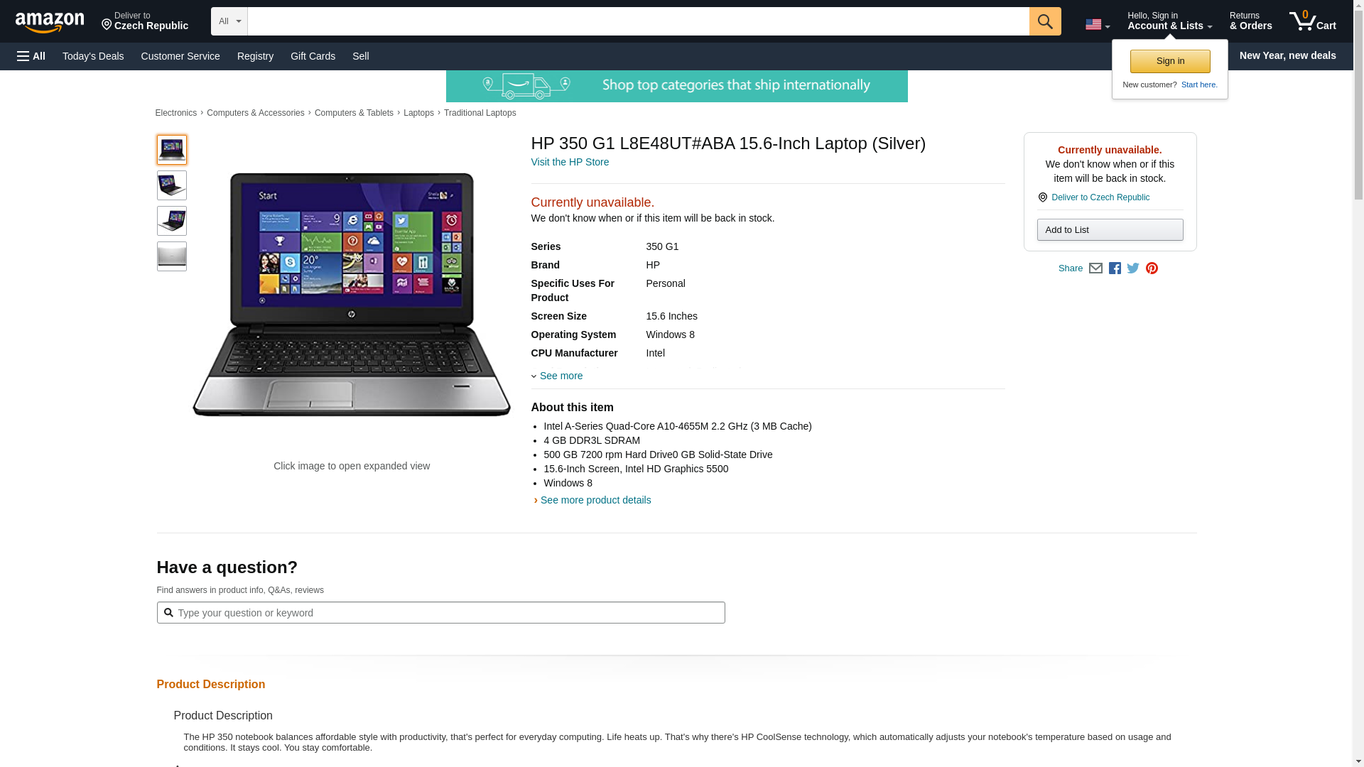 General InformationThe 350 Notebook PC is built with reliability in mind - inside and out - to meet the needs of professionals on the move.Processor & ChipsetProcessor Manufacturer:IntelProcessor Type:Core i5Processor Model:i5-5200UProcessor Speed:2.20 GHzMaximum Turbo Speed:2.70 GHzProcessor Core:Dual-core (2 Core)Cache:3 MBDirect Media Interface:5 GT/s64-bit Processing:YesHyper-Threading:YesChipset Manufacturer:IntelMemoryStandard Memory:4 GBMaximum Memory:16 GBMemory Technology:DDR3L SDRAMMemory Standard:DDR3L-1600/PC3-12800Number of Total Memory Slots:2Memory Card Reader:YesMemory Card Supported:Secure Digital (SD)Memory Card Supported:Secure Digital High Capacity (SDHC)Memory Card Supported:Secure Digital Extended Capacity (SDXC)StorageHard Drive Capacity:500 GBHard Drive Interface:Serial ATA/300Hard Drive RPM:7200Optical Drive Type:DVD-WriterOptical Media Supported:DVD-RAM/±R/±RWDual-Layer Media Supported:YesDisplay & GraphicsScreen Size:15.6"Display Screen Type:Active Matrix TFT Color LCDAspect Ratio:16:9Screen Mode:HDScreen Resolution:1366 x 768Backlight Technology:LEDGraphics Controller Manufacturer:IntelGraphics Controller Model:HD Graphics 5500Graphics Memory Technology:DDR3L SDRAMGraphics Memory Accessibility:SharedNetwork & CommunicationWireless LAN:YesWireless LAN Standard:IEEE 802.11b/g/nEthernet Technology:Gigabit EthernetBluetooth:YesBluetooth Standard:Bluetooth 4.0Modem:NoBuilt-in DevicesWebcam:YesMicrophone:YesSpeakers:YesInterfaces/PortsHDMI:YesTotal Number of USB Ports:3Number of USB 2.0 Ports:1Number of USB 3.0 Ports:2VGA:YesNetwork (RJ-45):YesModem (RJ-11):NoHeadphone/Microphone Combo Port:YesSoftwareOperating System Platform:WindowsOperating System:Windows 8Operating System Architecture:64-bitSoftware Included: <ul> <li>HP Recovery Manager</li> <li>CyberLink YouCam 5</li> <li>CyberLink PowerDVD 12</li> <li>McAfeeTM LiveSafe- Internet Security (First 60 days included)</li> <li>Intel Small Business Advantage</li> <li>HP ePrint</li> </ul>Input DevicesKeyboard:YesPointing Device Type:TouchPadTouchPad Features:Multi-touch GestureBattery InformationNumber of Cells:4-cellBattery Chemistry:Lithium Ion (Li-Ion)Battery Energy:41 WhPower DescriptionInput Voltage:120 V ACInput Voltage:230 V ACMaximum Power Supply Wattage:45 WPhysical CharacteristicsColor:SilverHeight:0.9"Width:15.1"Depth:10.4"Weight (Approximate):5.07 lbMiscellaneousPackage Contents: <ul> <li>350 G2 Notebook PC</li> <li>Lithium Ion Battery</li> <li>AC Adapter</li> </ul>Certifications & Standards: <ul> <li>UL</li> <li>CSA</li> <li>FCC Compliance</li> <li>ICES</li> <li>Australia /NZ A-Tick Compliance</li> <li>CCC</li> <li>Japan VCCI Compliance</li> <li>KC</li> <li>BSMI</li> <li>CE Marking Compliance</li> <li>BNCI or BELUS</li> <li>CIT</li> <li>GOST</li> <li>Saudi Arabian Compliance (ICCP)</li> <li>SABS</li> <li>UKRSERTCOMPUTER</li> <li>Wi-Fi Certified</li> <li>ACPI Compliance</li> </ul>Security Features: <ul> <li>Security Lock Slot (lock must be purchased separately)</li> <li>HP 3D DriveGuard</li> <li>TPM</li> </ul>Green Compliant:YesGreen Compliance Certificate/Authority:IT Eco DeclarationGreen Compliance Certificate/Authority:RoHSGreen Compliance Certificate/Authority:WEEEGreen Compliance Certificate/Authority:EU WEEEGreen Compliance Certificate/Authority:ENERGY STARGreen Compliance Certificate/Authority:EPEAT SilverCountry of Origin:ChinaWarrantyLimited Warranty:1 Year