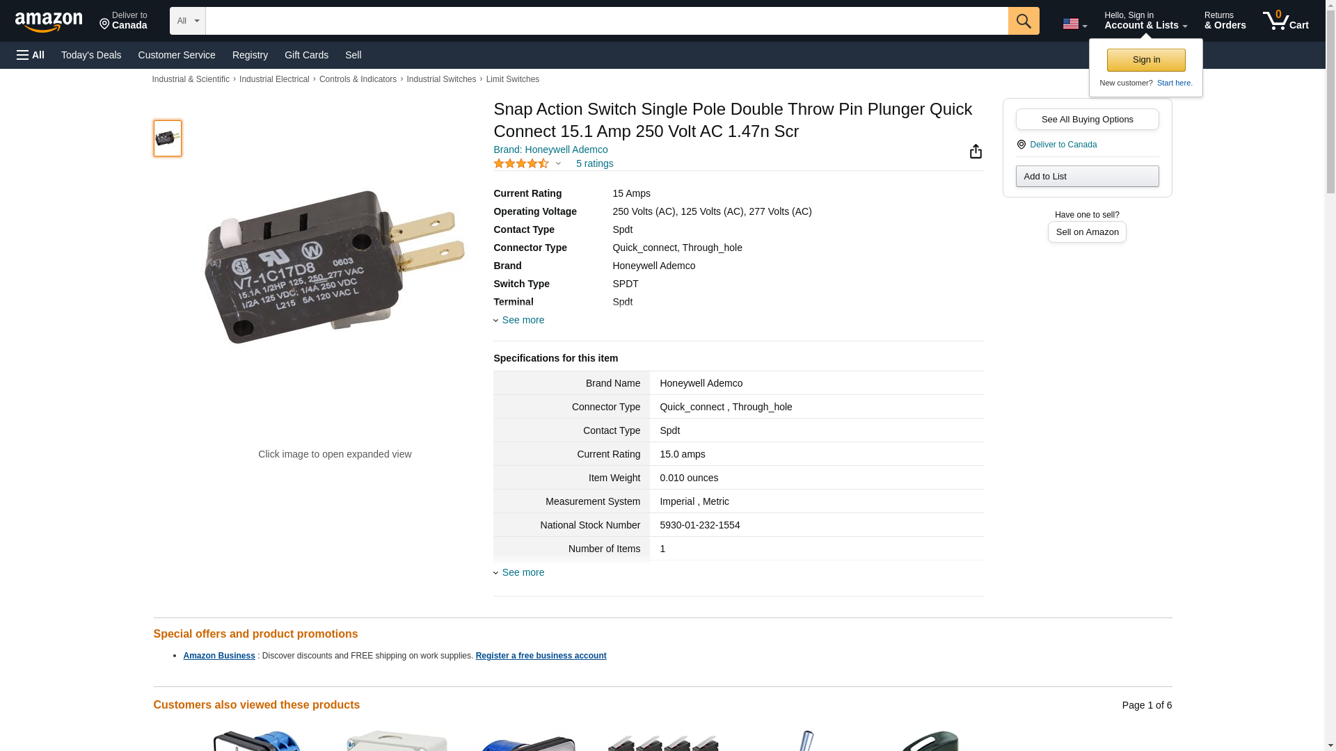 <b>SPDT Basic Miniature Switch</b><br><br><b>Features:</b><br><li>Contact form: SPDT<li>Size: 1.1"L x 0.4"W x 0.63"H<li>Actuator type: Pin plunger<li>Contact rating: 15A @ 125/250/277VAC<li>Mechanical life: 50,000,000 operations<li>Electrical life: 300,000 operations<li>Terminal type: 0.183" quick connect