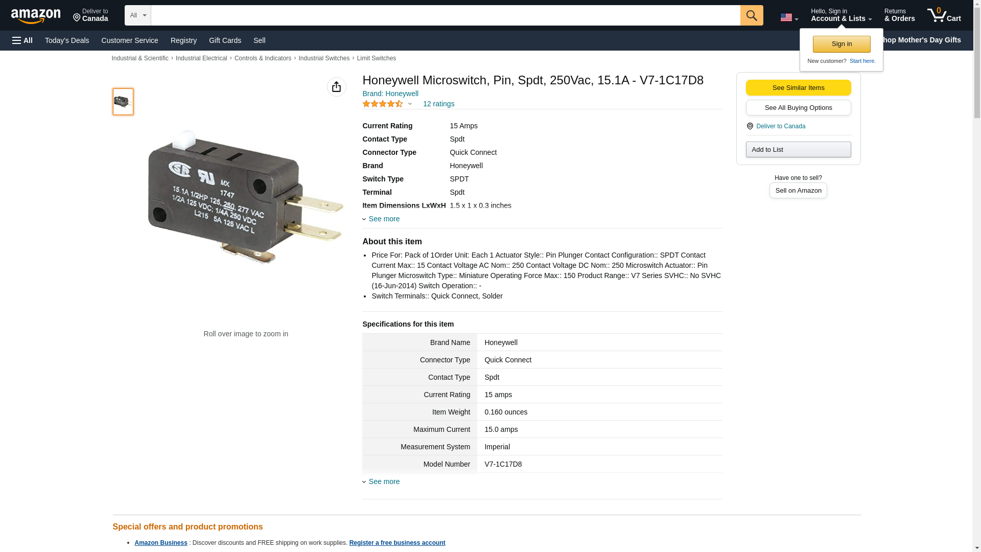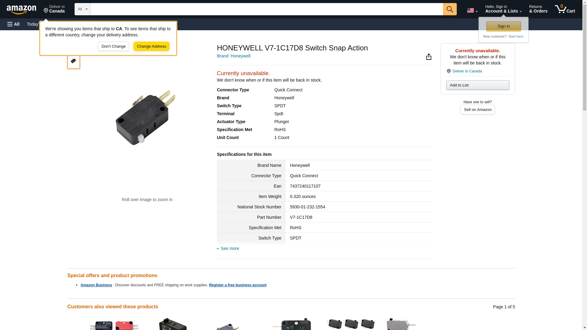 HONEYWELL V7-1C17D8 Switch Snap Action