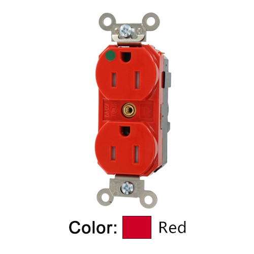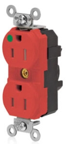 Leviton MT820-ILR 5-15R 2P3W Lev-Lok Duplex Receptacle Tamper-Resistant Isolated Ground Hospital - Red (Pkg of 10)