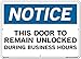 Vestil SI-N-56-E-AL-040 Notice Sign Aluminum .040" Overall Size 20.5"W x 14.5"H This Door to Remain Unlocked During Business hours , 14.5" Height, 20.5" Wide, 0.04" Length