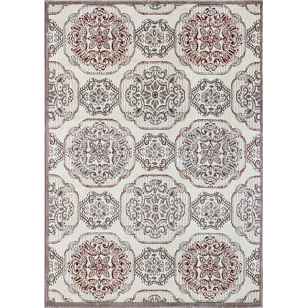 <ul> <li>Features an exquisitely-detailed medallion pattern</li> <li>Made of durable and stain-resistant polypropylene</li> <li>Choose from two color combinations: Taupe/Red and Taupe/Navy</li> <li>Available in two sizes: 5x7 or 8x10</li> </ul>