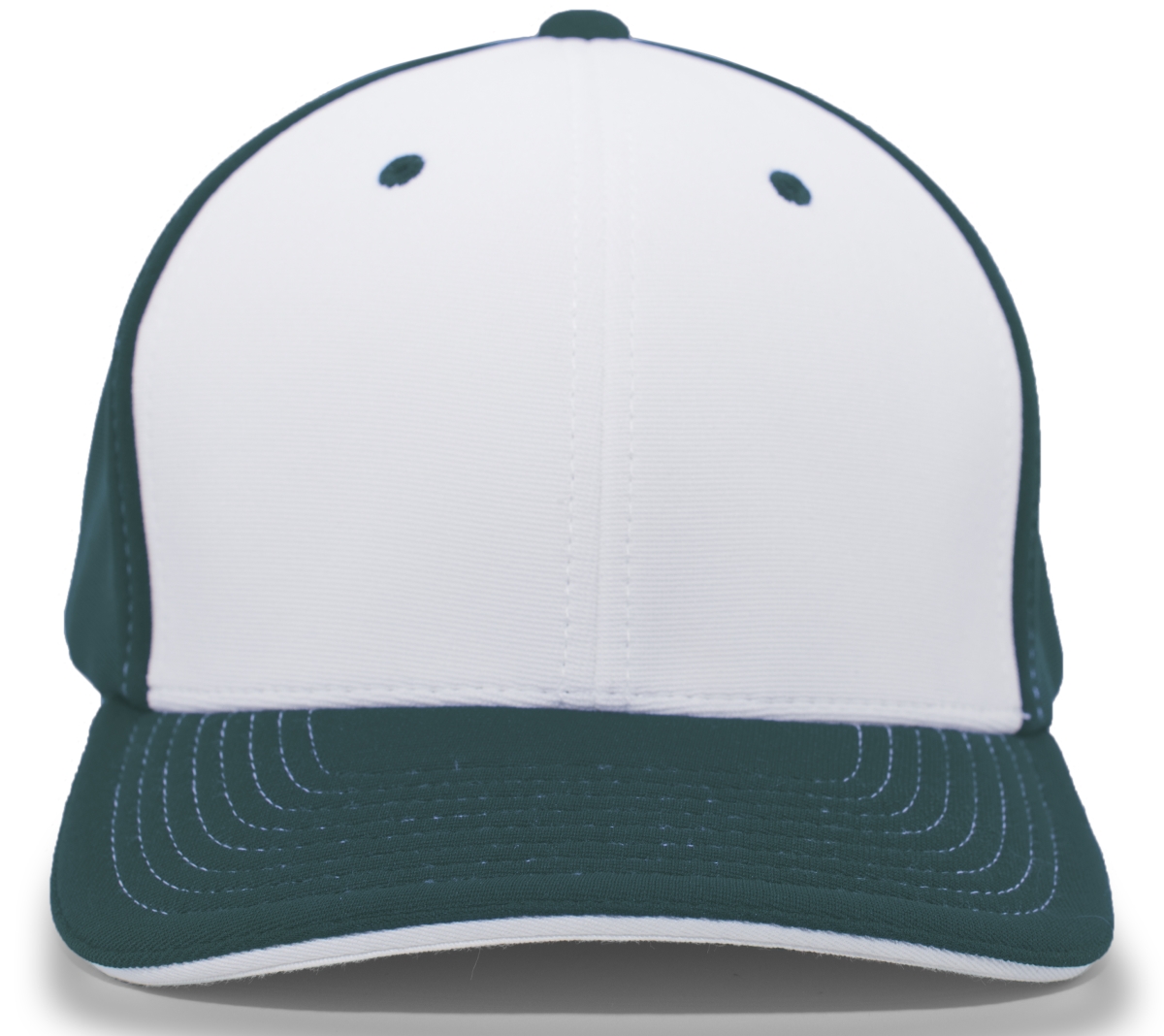 Pacific Headwear 398F.34Q.S-M M2 Performance Contrast Flexfit Cap, White & Dark Green - Small & Medium