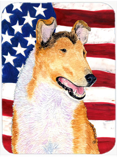 Caroline's Treasures SS4226LCB USA American Flag with Collie Smooth Glass Cutting Board Large Decorative Tempered Glass Kitchen Cutting and Serving Board Large Size Chopping Board