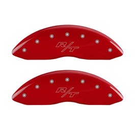 MGP Caliper Covers 12088SRTRRD Caliper Cover (Red Powder Coat Finish, Engraved Front and Rear: Vintage Style/RT, Silver Characters, Set of 4)