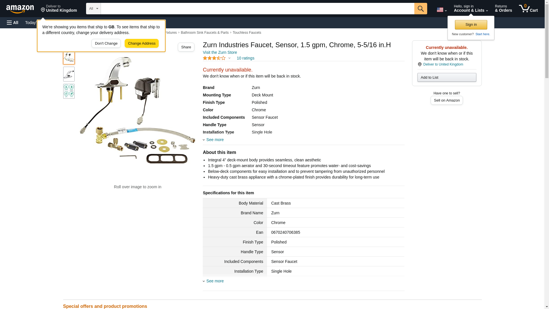 Zurn Industries Faucet, Sensor, 1.5 gpm, Chrome, 5-5/16 in.H