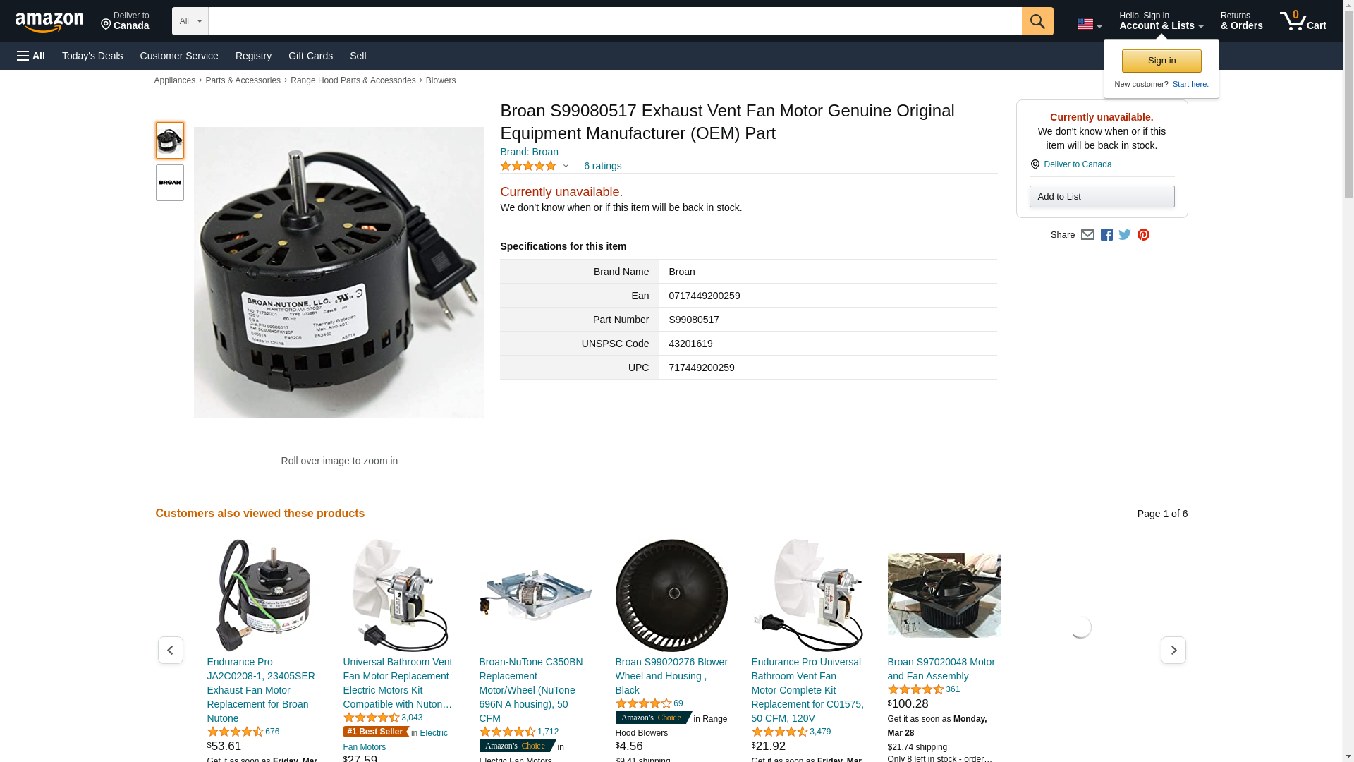 | S99080517 | 1 | Broan-Nutone orders over $375 Usually Ship NextBusiness Day, otherwise 5-7 Days | 1 | 1 @ $66.09 | |