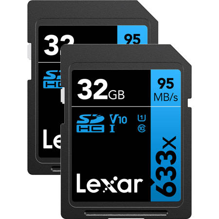 Lexar Professional 633x 32GB (2-Pack) SDHC UHS-I Card, Up To 95MB/s Read, for Mid-Range DSLR, HD Camcorder, 3D Cameras, LSD32GCB1NL6332 (Product Label May Vary)
