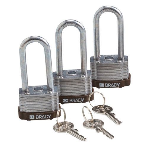 Brady 123276 Brady Key Retaining Steel Padlocks - 5-pin Cylinder, 2" Shackle Clearance, Keyed Alike, Brown