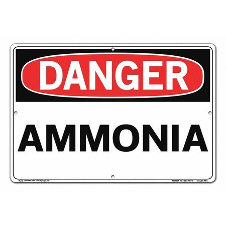 Vestil SI-D-50-D-PS-040 AMMONIA Danger Sign, Polystyrene, 0.040" Overall Size, 18.5" W x 12.5" H