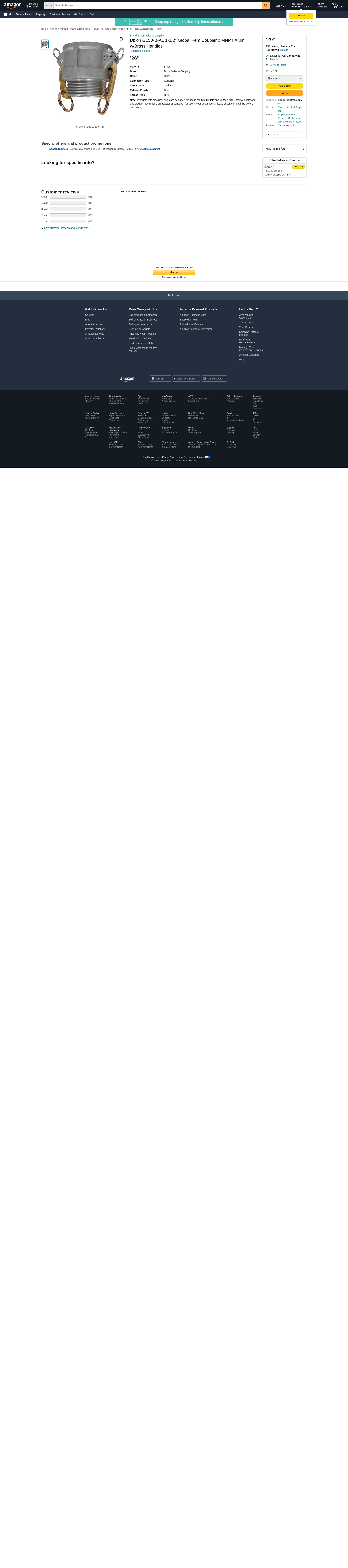 Dixon G150-B-AL 1-1/2" Global Fem Coupler x MNPT Alum w/Brass Handles