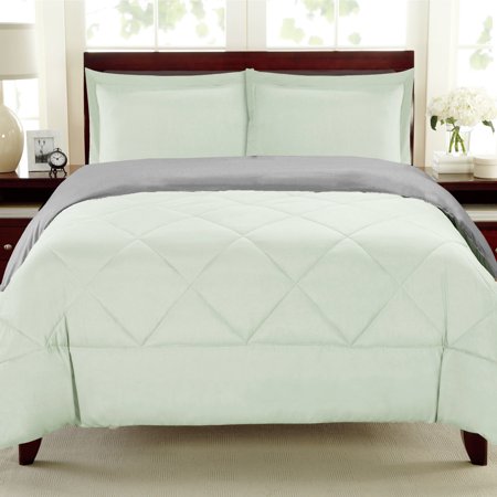 <p>3-Piece Set: Peach Skin Reversible Polyester Microfiber Down Alternative Comforter Ensemble - Assorted Colors</p> <p>Pick up a peach and what do you do first? If you're anything like us, you feel the fuzzy texture and are a little in awe of how nature can come up with such a soft-to-the-touch piece of perfection.</p> <p>With these beautiful comforters, that heavenly feel has been emulated with a soft microfiber material. Snuggle underneath the quilted bedding and relish the comfort.</p> <p>With their reversible styling, it will feel like you're receiving 2 of these cozy sets for the price of one! So don't hesitate. Sink your teeth into this delectable deal. It really is peachy!</p> <h2>Features:</h2> <ul> <li>100% polyester</li> <li>90 GSM</li> <li>Comforter features dual reversible colors</li> <li>Includes comforter and matching pillow shams</li> <li>Comes packaged in an attractive vinyl bag with zipper</li> <li>Machine wash cold with like colors, non-chlorine bleach when needed, tumble dry low</li> </ul> <h2>Available sizes:</h2> <ul> <li>Twin</li> <li>Full-Queen</li> <li>King</li> </ul> <p>*If you want to achieve a draped look, we suggest ordering 1 size larger than your bed size<br />*Twin size includes only 1 pillow sham.</p> <h2>Available Colors:</h2> <ul> <li>Burgundy & Black</li> <li>Chocolate & Cream</li> <li>Navy & Regatta</li> <li>Sage & Cream</li> <li>Patriot Blue & Stone</li> <li>Chocolate & Cream</li> <li>Stone & Eucalyptus</li> <li>Grey & Black</li> <li>Burgundy & Gray</li> <li>Mushroom & Lavender</li> <li>Gray & Wine</li> <li>White</li> </ul> <h2> Size Guide:</h2> <table cellspacing="0" cellpadding="0" border="1" style="border-collapse: collapse; border: 1px solid #000000; color: #000000; width: 100%; background-color: #ffffff;"> <tbody> <tr> <td><strong>Size Guide</strong></td> <td><strong>Twin</strong></td> <td><strong>Full/Queen</strong></td> <td><strong>King</strong></td> </tr> <tr> <td><strong>Comforter</strong></td> <td>66"W x 86"L</td> <td><span style="background-color: #ffffff;">86"W x 86"L</span></td> <td><span style="background-color: #ffffff;">102"W x 86"L</span></td> </tr> <tr> <td><strong>Pillow Sham</strong></td> <td>20"W x 26"L (1 Sham)</td> <td><span style="background-color: #ffffff;">20"W x 26"L (2 Shams)</span></td> <td><span style="background-color: #ffffff;">20"W x 36"L (2 Shams)</span></td> </tr> </tbody> </table>