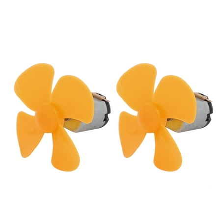 <ul> <li>Package Content: 2Pcs x RC Motor Propeller; Main Color: Yellow</li> <li>Vane Number: 4; Motor Shaft Hole Diameter: 2mm/0.08"</li> <li>Rotating Diameter: 60mm/2.36"; Rated Voltage: DC 3V</li> <li>Output Speed: 12500RPM; Current: 0.13A</li> </ul>