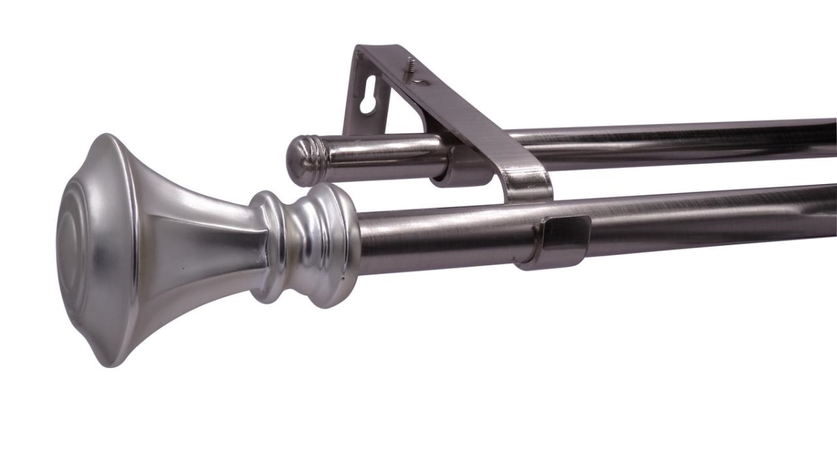 Legacy Home 32-1031-12BN 36-72 in. Adjustable Double Curtain Rod with Decorative Finials, Brushed Nickel
