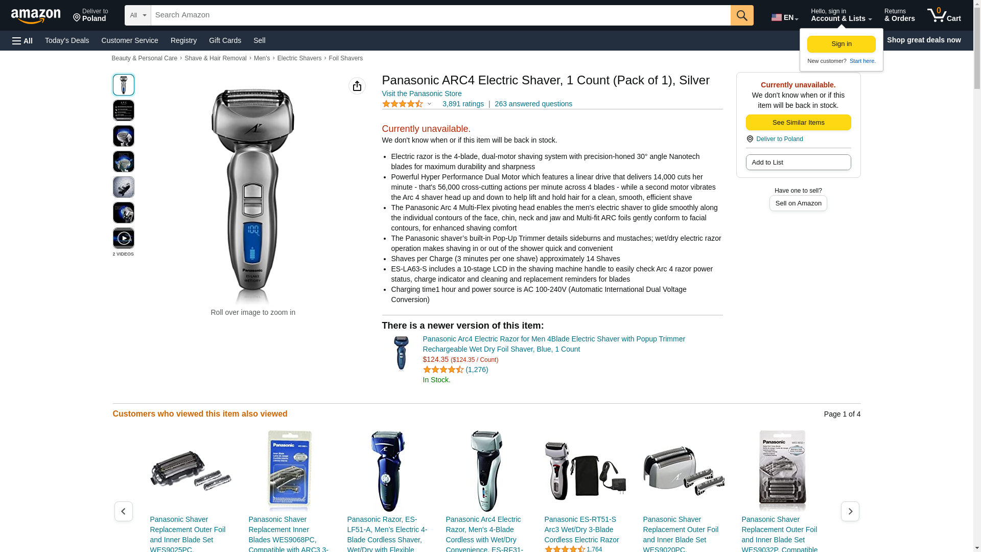 Panasonic ARC4 Electric Shaver, 1 Count (Pack of 1), Silver