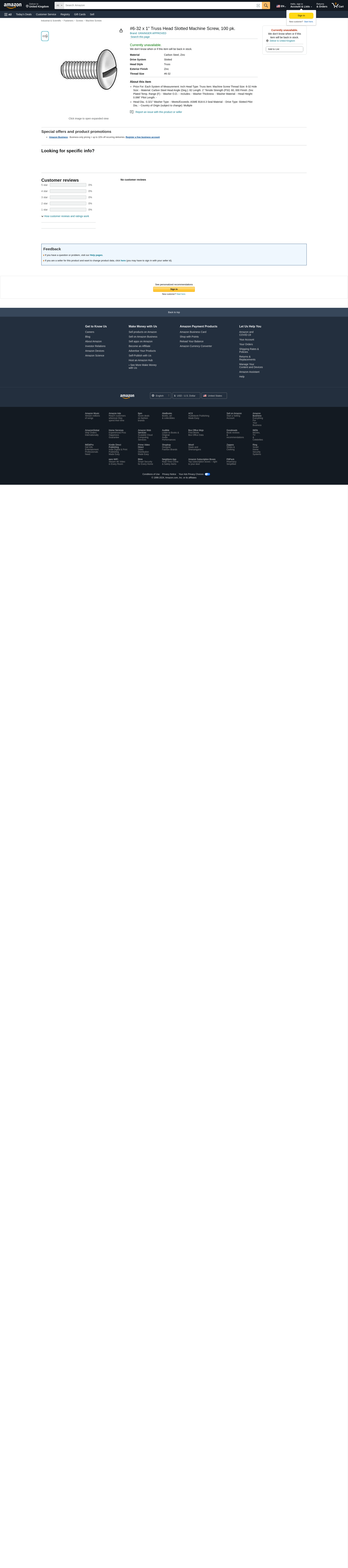 #6-32 x 1" Truss Head Slotted Machine Screw, 100 pk.