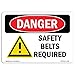 OSHA Danger Sign - Safety Belts Required | Choose from: Aluminum, Rigid Plastic Or Vinyl Label Decal | Protect Your Business, Construction Site, Warehouse & Shop Area | Made in The USA