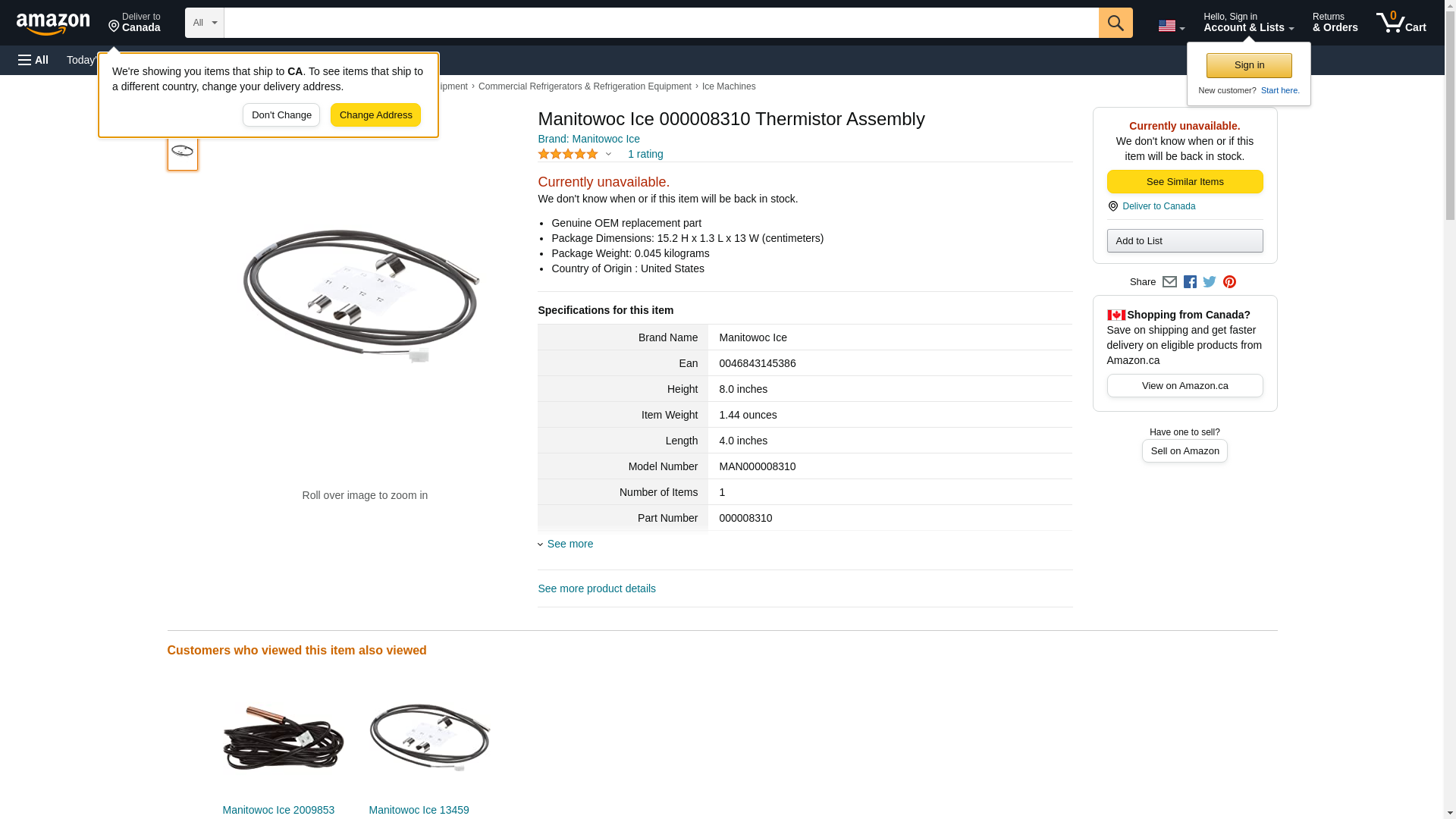 Manitowoc Equipment Works 000008310 THERMISTOR WITH CLIPS