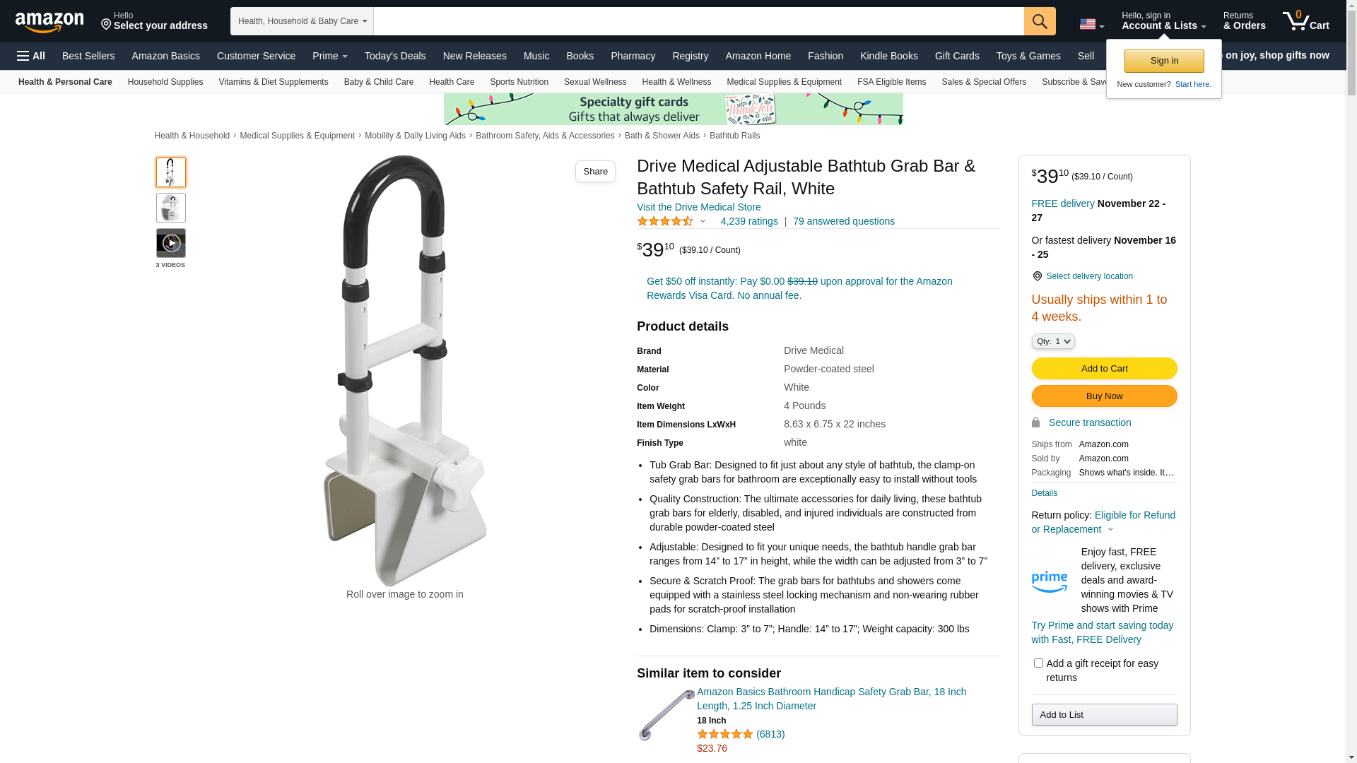 - Drive medical - adjustable height bathtub grab bar safety rail