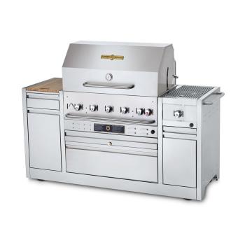 - Gas grill constructed of 304 stainless steel including grids, burners and all fasteners