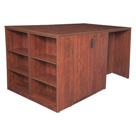 2 Storage Cabinet/ 2 Desk Quad with Bookcase End, 46" D, 85" W, 42" H, Cherry, Melamine Laminate