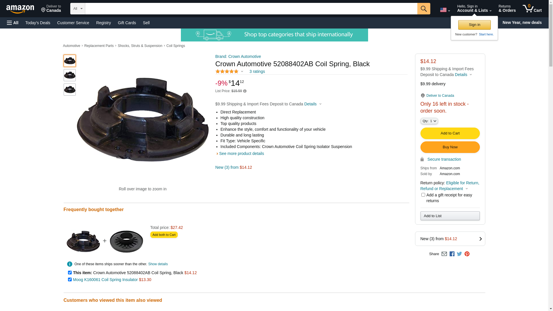 ![]() automotivestuff.com | CROWNAUTOMOTIVE-52088402AB | 1 | -2 | 1 | 1 @ $31.15 |