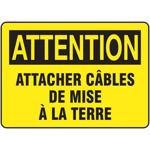 Order FRMCHL710VP by Accuform French Sign "Attacher Cables De Mise a La Terre" - US Mega Store