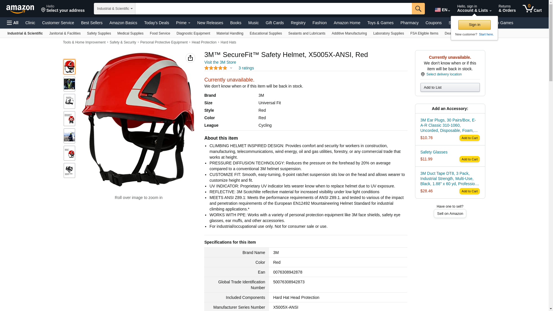 3M - X5005X-ANSI - SecureFit Safety Helmet, X5005X-ANSI, Red - RS
