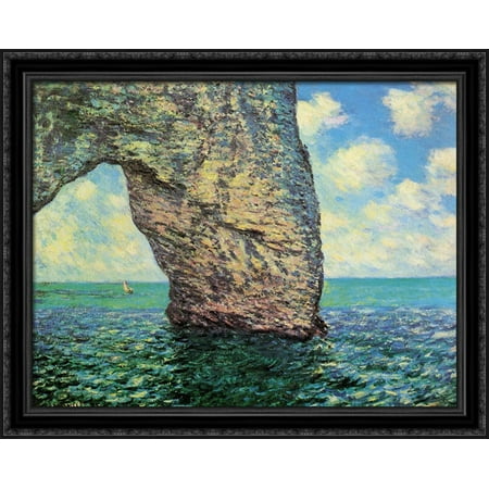 The Manneport at High Tide 34x28 Large Black Ornate Wood Framed Canvas Art by Claude Monet