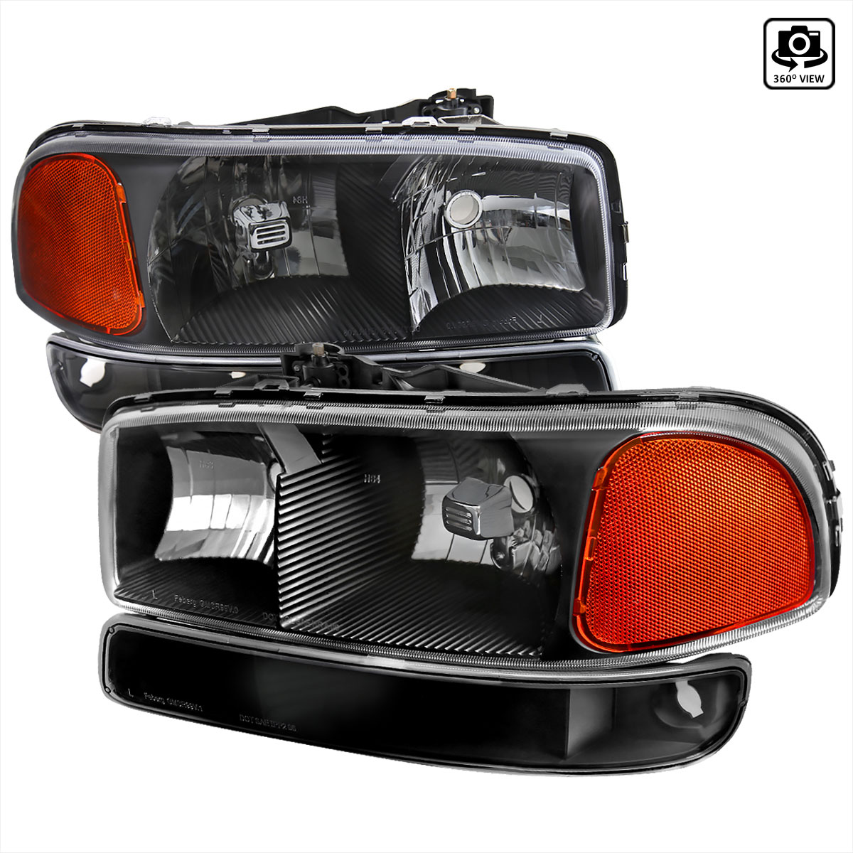 Spec-D Factory Style Crystal Headlights w/ Bumper Lights & Amber Reflectors (Matte Black Housing/Clear Lens) GMC 1999-2007 | 2LBLH-GMC99JM-RS