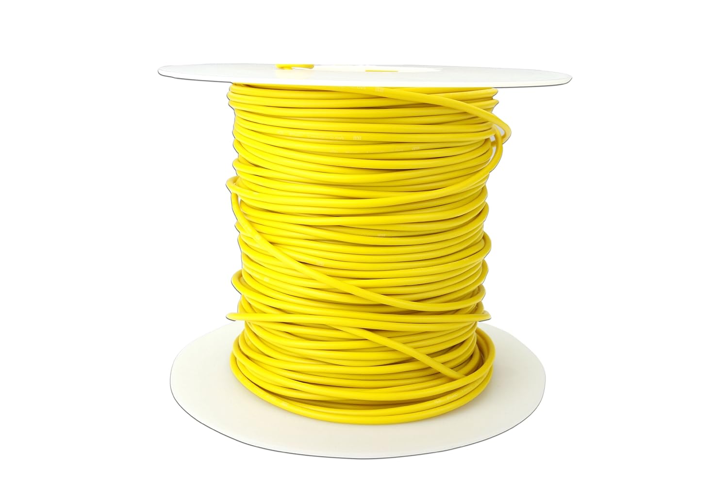 Ideal test lead wire for building Do-It-Yourself (DIY) test leads, patch cords, and test fixtures. Silicone is the best test lead jacket material, combining high flexibility, even at low temperatures, with resistance to burns and chemicals. The jacket features a durable colored outer layer with an inner white layer for cut or wear visibility. The conductor is highly stranded soft bare copper for additional flexibility. 18 AWG (0.75 sq mm) Silicone jacket, 12 A. Meets the safety requirements of IEC 61010-031 1000 V CAT IV. IEC rating: 1000 V CAT IV. Maximum current: 12A. Jacket material: silicone. Conductor area: 0.75 sq mm. Wire gauge: 18 AWG. Stranding: #195 x 0.07mm diameter. Temperature: -60 to +180 degree C. RoHS (2002/95/EC) compliant. Measures 3.7mm outside diameter by 10m length. Yellow color.