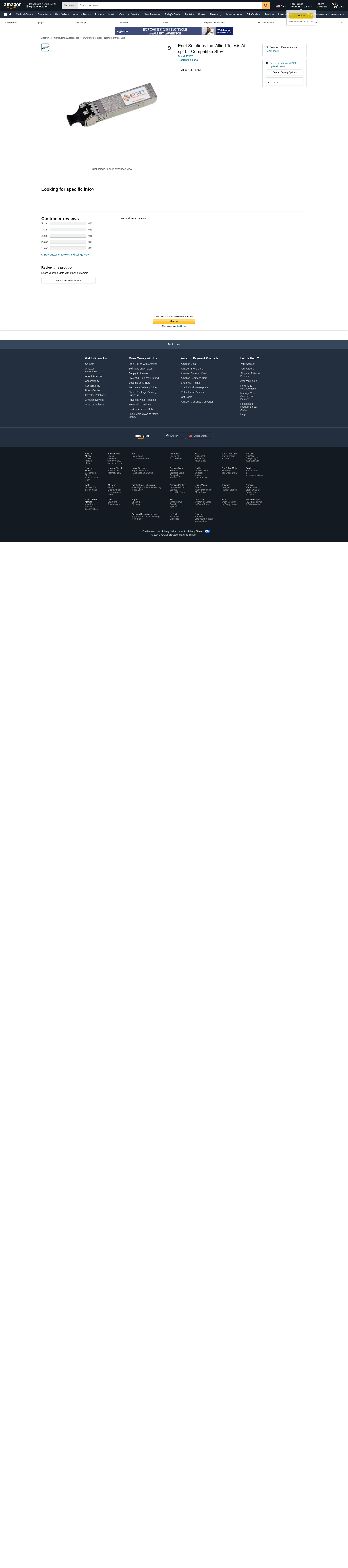 ENET Solutions, Inc. offers the most complete line of OEM compatible network peripherals spanning over 50 manufacturers. We specialize in OEM compatible optics, direct attach cables (AOC/DAC), copper and fiber patch cables, media converters, along with switch, router, and server memory. ENET-compliant products provide a guaranteed, 100% cost-effective solution compared to OEM products at a fraction of the price without sacrificing quality or functionality. ENET offers unmatched quality by performing the most comprehensive and comprehensive tests in the industry. Each optic is individually tested at 100% capacity on the latest network traffic generation equipment for latency, packet loss, frame errors, transmit power (Tx) and receive power (Rx). All ENET transceivers are individually serialized and programmed for your specific application and are tested on those specific platforms to ensure 100% compatibility and functionality. Programming involves specific values and algorithms to ensure proper recognition of the operating software and seamless integration with original OEM and non-OEM transceivers. ENET-compliant transceiver solutions comply with IEEE standards for optimum performance and reliability, as well as RoHS and MSA (multi-source agreement) compliant with form, fit, and function on all ENET-compliant switching and routing platforms. MSA. All ENET products are backed by a lifetime warranty and are available in TAA compliant versions. Application/Usage: Data Network Application/Usage: Optical Network Product Type: SFP+ Interfaces/Ports Details: 1 x 10GBase-LR Product Type: SFP+ Manufacturer Part Number: AT-SP10LR-ENC Interfaces/Ports Details: 1 x LC 10GBase-LR Network Limited Warranty: Lifetime Weight (approximate): 4 lbs Network Technology: 10GBase-LR Manufacturer: ENET Components, Inc. Product Name: SFP+ Module Network Technology: 10GBase-LR Brand Name: ENET Brand Name: ENET Height: 4 Width: 5 Depth: 0.8 Maximum Data Transfer Rate: 10