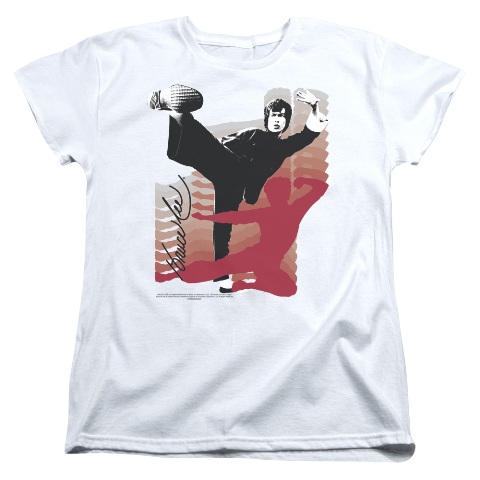 Trevco Bruce Lee-Kick It - Short Sleeve Womens Tee - White, Medium