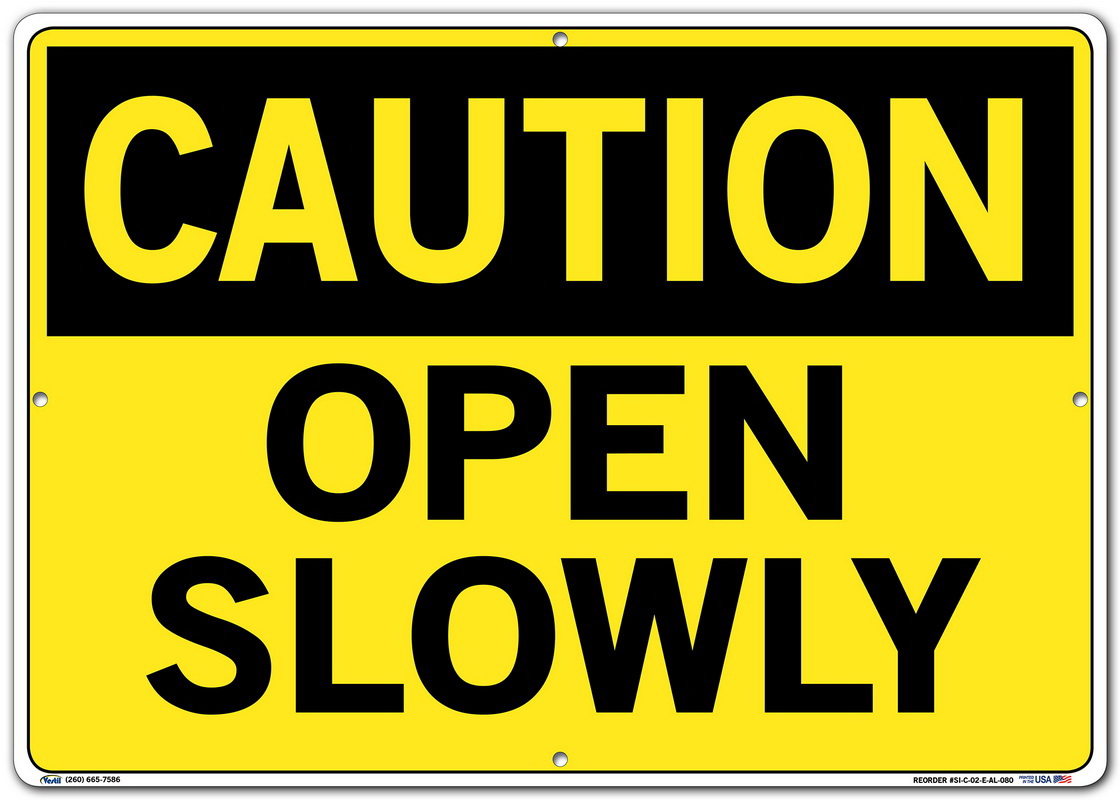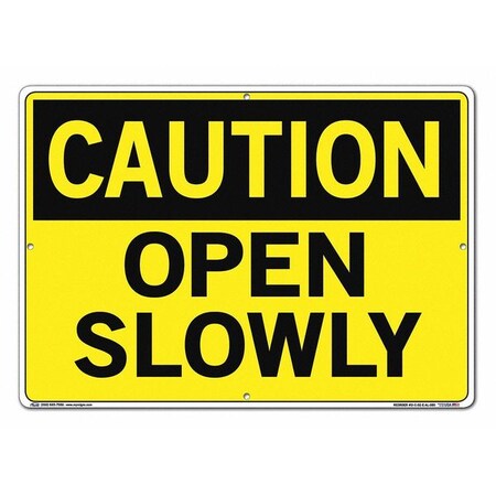 Vestil SI-C-02-E-AL-080 OPEN SLOWLY Caution Sign, Aluminum, 0.080" Overall Size, 20.5" W x 14.5" H