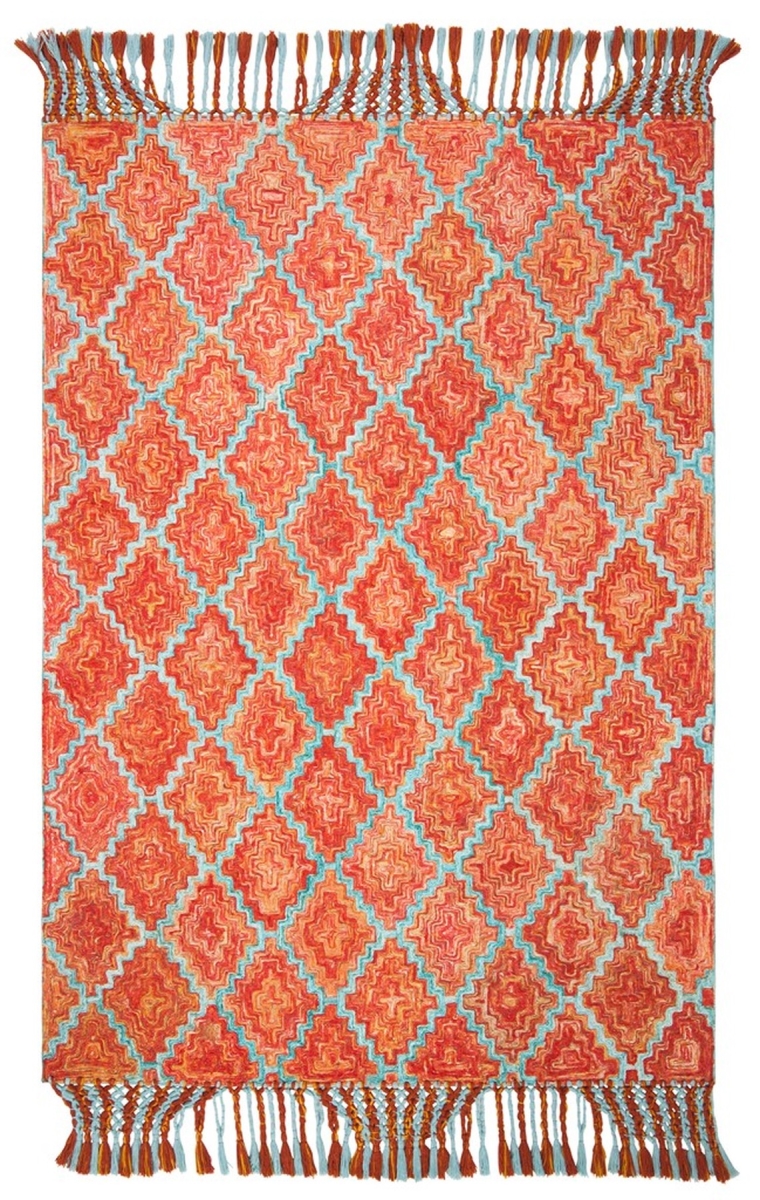 Safavieh SAH467P-5 5 x 8 ft. Sahara 400 Rectanglar Area Rug - Rust & Aqua