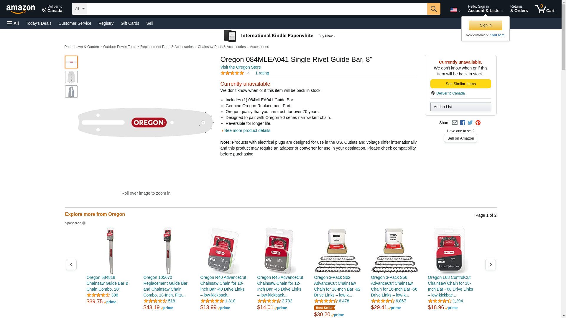 Genuine OEM Oregon - 084MLEA041 - BAR, 8IN Standard, 90 Series