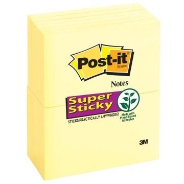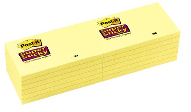 Post-it Notes Super Sticky Canary Yellow Note Pads, 3 x 5, 90/Pad, 12 Pads/Pack
