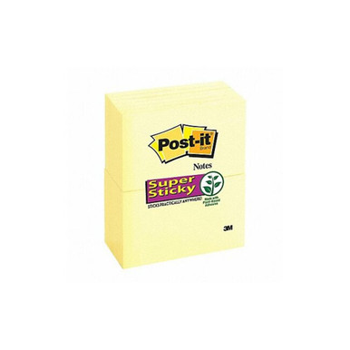 Post-it Super Sticky Notes have an enhanced adhesive which holds stronger and longer to vertical and difficult surfaces, removing cleanly after use. They are ideal for brainstorming and process mapping on meeting room walls and meeting charts. Canary Yellow. 90 sheets per pad, 12 pads per pack. 76mm x 127mm.
