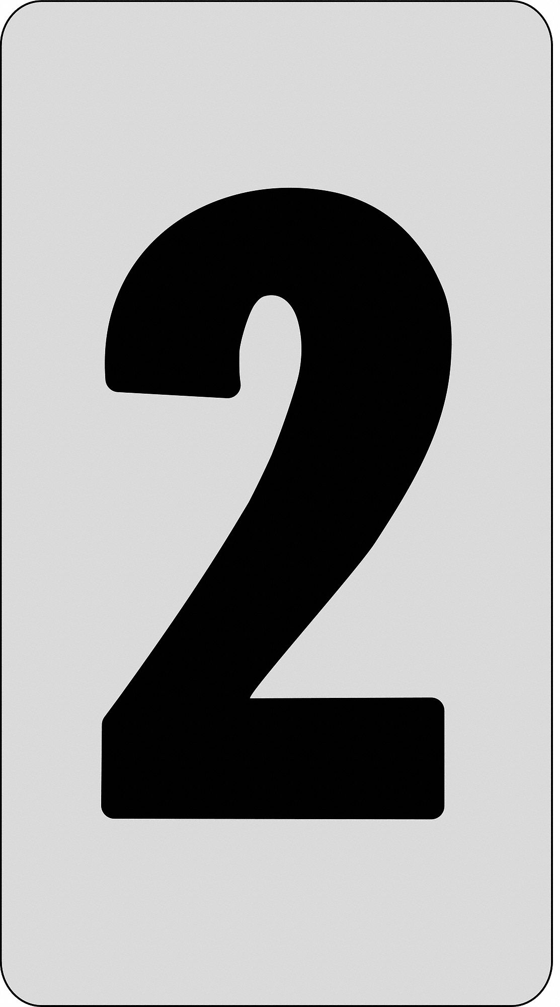 ELECTROMARK Number Card, 2, Black/Silver, 1 in Character Height, 100 PK - 21LC34|SLIDEKSAR1S2 - Grainger
