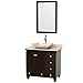 Wyndham Collection Acclaim 36 inch Single Bathroom Vanity in Espresso, Ivory Marble Countertop, Avalon Ivory Marble Sink, and 24 inch Mirror
