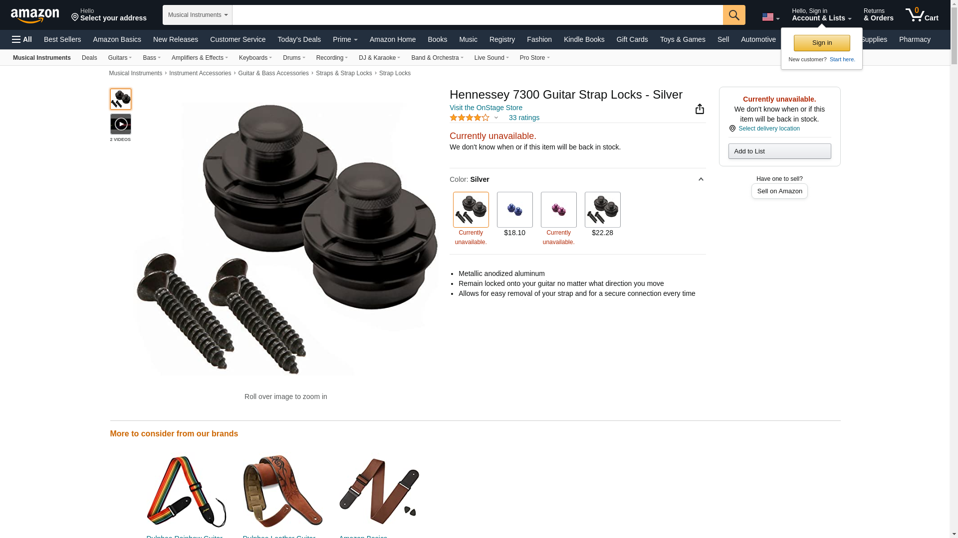 Hennessey 7300 Guitar Strap Locks - Silver