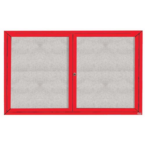 Aarco ODCC3660RIR 36" x 60" Enclosed Hinged Locking 2 Door Powder Coated Red Outdoor Lighted Bulletin Board Cabinet