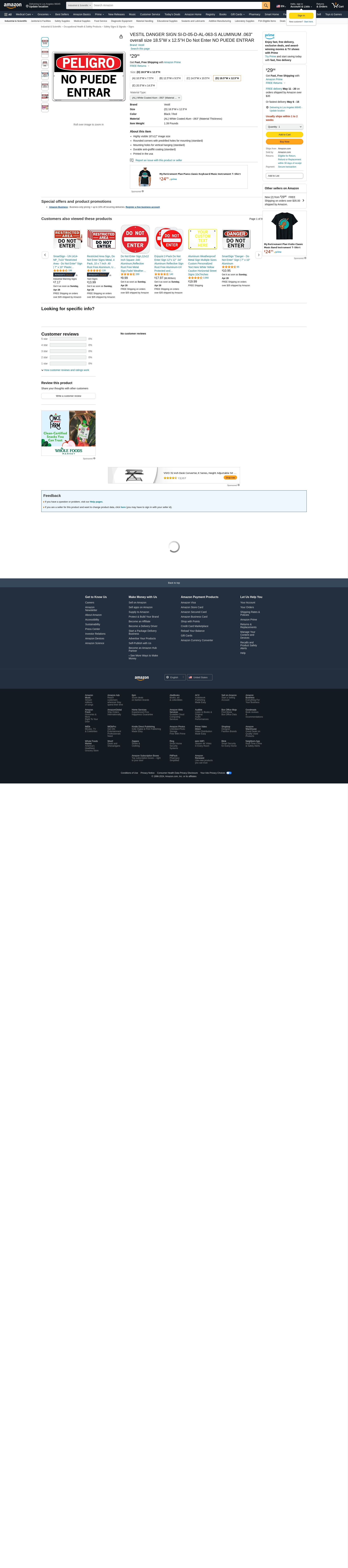 VESTIL DANGER SIGN SI-D-05-D-AL-063-S ALUMINUM .063" overall size 18.5"W x 12.5"H Do Not Enter NO PUEDE ENTRAR