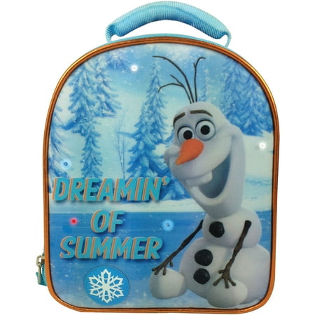<br /> <b>Disney Frozen Olaf Insulated Whopper Lunch Kit:</b> <ul> <li>Officially licensed</li> <li>Frozen graphics in microsilk</li> <li>Light-up, musical insulated lunch kit</li> <li>Top handle</li> <li>Zipper closure</li> <li>Dimensions: 9.25"W x 7.75"D x 5"H</li> </ul>
